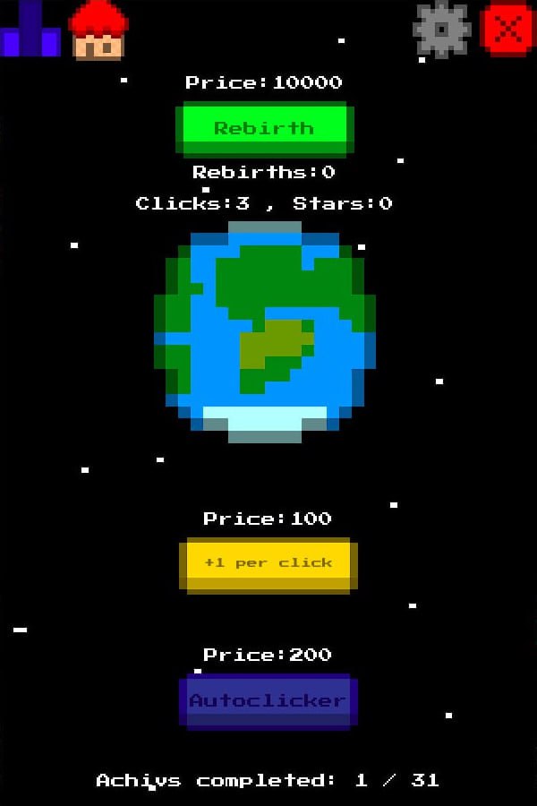 | Tags | 2D, Clicker, earth, game, GameMaker, leaderboards, No AI, Pixel Art, Retro, Space |